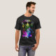 I give wanted to give this a 4 instead of a 5 because these Basic DARK T0shirts run unexpectedly SLIM or Narrow. Which is great if you do not have a potbelly, but I have a paunch. It isn't the shirt's fault that I've got a beer belly. The design and shirt itself is a quality cotton shirt. The color is more of a deep purple, but still a very pretty color. The Basic DARK T-shirts run a bit SLIMMER than the Basic Ts. The neck is a fraction narrower (or seems to be narrower) also. I'm a paunchy middle-aged woman and my neck is 12 inches (31cm) thick and the neckline fell about the same as in the photo of the man, and I had the desire to tug it a bit. So if you're a thick necked man or like loose shirts, be aware these are slimmer shirts. Once I get rid of my lockdown paunch it'll look great. The shirt washed well in cold water with no apparent bleeding. We don't have a dryer, so it hung dry. Did not shrink. Love the colors and the design. The design looks smaller on my shirt than it does on the model on-line. But still, it looks good on the shirt. The printing looks as it does on the model, just the size seems fractionally smaller. Washed garment in cold water, hung dry and design appeared unaffected.