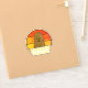 Funny Retro potato birthday sticker. This adorable , fun design features a happy brown potato with a big smile, dots for eyes and his arms sticking out to the side in front of a retro, distressed, orange, red and yellow sun. Below are templates to add whatever you want or leave as they are. The example text reads "Potato" one line and "since with date" below.