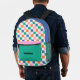Retro Preppy Colourful Chequered Colorblock Printed Backpack