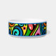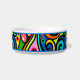 Create a custom made ceramic pet bowl for your cat or dog. Retro Psychedelic 60s Pattern Fun & Colourful Personalised Dog or Cat Pet Bowl. Give your "best friend" a customised food and water bowl or great as a gift for another animal lover. Pet accessories can add a decorative touch to any room. Choose a small or large size bowl.