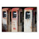 Photograph of three rusty vintage gasoline pumps. Retro cool!