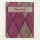A custom-made calendar planner notebook to organise your notes, appointments, dates, or other important info. Retro Purple Black Diamond Pattern Personalised Planner Notebook. Many uses and multiple purposes. Personalise with name, initials, message, quote, or anything you desire.
