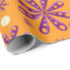 Retro Purple Flowers on Orange Background Wrapping Paper