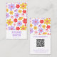 A Vintage retro colourful floral flowers business card. As you see it features a handmade groovy floral pattern of boho abstract  flower daisies in purple and pink and red and yellow   .It has nostalgic seventies vibes and colours and groovy fonts. And you can simply and easily  customise the  name and profession and QR code. By clicking on the personalise button. So grab it and make it yours so you your business is catchy and way different.