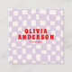 Retro Purple Red QR Code Groovy Chequered Boho Fun Square Business Card