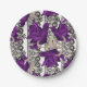 Retro, purple roses paper plate