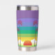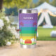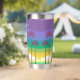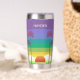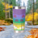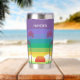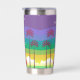 Modern colorful personalised tumbler with retro style sunset and palm trees art.