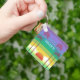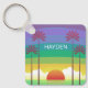 Modern colorful personalised keychain with retro style sunset and palm trees art.