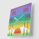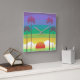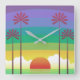 Retro Purple Sunset Palm Trees Art Square Wall Clock