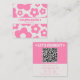 Retro QR Code Pink Groovy Floral Boho Girly Trendy Square Business Card