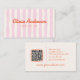 Retro QR Code Pink Hand Drawn Stripped Girly Boho Business Card