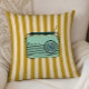 Throw pillow with radio illustration on a gold striped background. Perfect for dorm rooms.