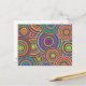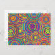 postcard with a groovy retro circles pattern in all the colours of the rainbow.