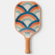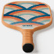 Retro rainbow pickleball paddle in orange and blue colours. Double-sided and personalised with a name or any custom text on one side with a cool and trendy font.