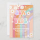 Celebrate your childs special day with this retro rainbow birthday invitation featuring pastel stripes, groovy daisies, butterflies, peace signs, and smiley faces. Perfect for a 6th birthday party, this vibrant design captures the fun, boho vibe of the 70s with playful colours and cheerful motifs. Customise with your party details to create a unique, eye-catching invitation that guests will love. Ideal for kids birthdays, especially girls who adore colourful, groovy themes.