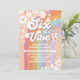 Celebrate your childs special day with this vibrant retro rainbow birthday invitation featuring playful daisies, peace signs, hearts, butterflies, and a cheerful smiley face. The groovy pastel stripes in orange, pink, purple, and teal create a fun hippie vibe perfect for kids parties. Fully customizable with party details, this colorful design is ideal for a 6th birthday or any retro-themed celebration. Make your event unforgettable with a unique invitation that radiates peace, love, and joy.