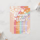 Celebrate in groovy style with this retro rainbow birthday invitation featuring daisies, peace signs, butterflies, and smiley faces. Perfect for kids parties, this 70s-inspired design blends vibrant pastel colors with playful typography to set the mood for a fun celebration. Customize with your party details and make your childs birthday unforgettable. Ideal for retro, hippie, or rainbow-themed birthday parties, this invitation adds a cheerful and nostalgic vibe guests will love.
