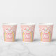 Five is a Vibe! Retro inspired 5th birthday paper cups with 70's style fonts and colours, rainbow, and daisies in pink