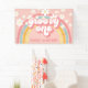 Groovy One! Retro inspired 1st birthday banner with 70's style fonts and colours, rainbow, and daisies in pink