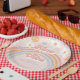 Retro Rainbow Nine is a Vibe 9th Birthday Paper Plate