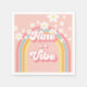 Nine is a Vibe! Retro inspired 9th birthday napkins with 70's style fonts and colours, rainbow, and daisies in pink