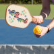 Retro inspired and simple Pickleball paddle racket. Features rainbow retro fonts and colourful pickle balls. Perfect gift for the pickleball lover in your family or friend. To make more changes go to Personalise this template. On the bottom you’ll see “Want to customise this design even further? Click on the EDIT using Design tool. From there you can change some of the fonts & some colours, move things around or delete what you need.