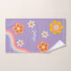 Retro Rainbow kids Bath Towel Set in purple background for baby girls