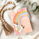Celebrate in style with this retro rainbow roller skates birthday invitation! Featuring a groovy peach background with daisies, peace signs, and a vibrant rainbow, this design captures the fun and carefree spirit of the 70s. Perfect for kids parties, first birthdays, or any celebration with a hippie boho vibe, this invitation blends nostalgia with playful charm. Guests will love the colorful roller skates and cheerful details that set the tone for a fun-filled event.
