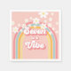 Seven is a Vibe! Retro inspired 7th birthday napkins with 70's style fonts and colours, rainbow, and daisies in pink