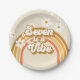 Retro Rainbow Seven is a Vibe Groovy 7th Birthday Paper Plate