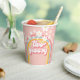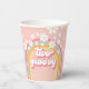 Two Groovy! Retro inspired 2nd birthday paper cups with 70's style fonts and colours, rainbow, and daisies in pink