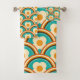 Retro Rainbow Waves and Flowers Pattern Bath Towel Set