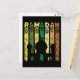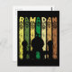 Retro Ramadan Mosque with fanous in yellow, green, and brown.
