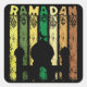 Retro Ramadan Mosque with fanous in yellow, green, and brown.
