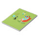 This Retro Reading Woman Notepad features a 1960's style, minimalist art, cartoon drawing of a woman who has her priorities in order. This delightful bookworm is entranced in a real page-turner. The shapely brunette is wearing an aqua dress and red glasses, while holding a blue book. She is seated in a comfy, red egg chair. In front of her, a sleek, black cat in a teal collar is enjoying the peace and quiet that comes from living with a bibliophile. Both woman and cat are in a stylish green room. Overhead, there is a kitschy pendant lamp in shades of yellow and turquoise. To the side, there is a lush, tropical, potted plant in an aqua flowerpot. Kitty, if you need something, you'll have to wait until she finishes this chapter!