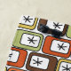 This beach towel has a mid-century modern design of rounded rectangles in green, gold, orange, or brown with starbursts inside. If you like the design but prefer different colours, message me.