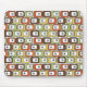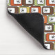 This mouse pad has a mid-century modern design of rounded rectangles in green, gold, orange, or brown with starbursts inside. If you like the design but prefer different colours, message me.