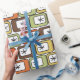 This 1970s wrapping paper has a mid-century modern design of rounded rectangles in green, gold, orange, or brown with starbursts inside. If you like the design but prefer different colours, message me.