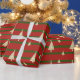 Modern, retro, red and green Christmas wrapping paper with cute unique pine tree pattern.