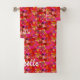 Retro Red and Pink Circle Pattern Bath Towel Set