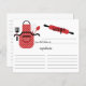 Fun retro bridal shower kitchen recipe cards featuring a red polka dot apron with kitchen tools & rolling pin. The front of our recipe card offers room for a recipe title, from the kitchen of and ingredients space. Flip our recipe card over to view our lined back for recipe directions. Visit our shop for matching bridal shower invitations Available in our shop in a large assortment of popular wedding shower colours. Perfect bridal shower invitation insert for a stock the kitchen bridal shower.