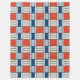 This fleece blanket features a retro geometric pattern in red, blue and light grey.