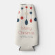 Cute retro Merry Christmas party bottle cooler with vintage 70 style ornaments in red, blue, and ivory above your family name. Beautiful nostalgic holiday favours for your dinner celebration.