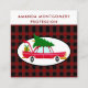 Has a lovely retro fifties style flair. Background is a red buffalo plaid pattern.