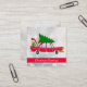 Retro Red Car Carrying a Christmas Tree Square Business Card