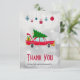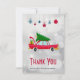 Retro Red Car Carrying a Christmas Tree Thank You Card