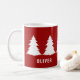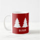 Retro Red Christmas Modern Minimal Unique personalised family holiday mug design With modern hand drawn text and trees.