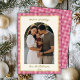Retro Red Gold Plaid Arch Photo Christmas Happy Holiday Card