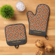 Add a touch of retro charm to your kitchen! This oven mitt set features a groovy abstract circle pattern in shades of red, gold, teal and black. Personalise with a name or other text of your choice using the personalisation feature! Perfect as a thoughtful gift or a treat for yourself.