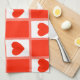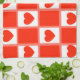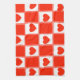 Retro Red Heart Chequerboard Pattern Tea Towel